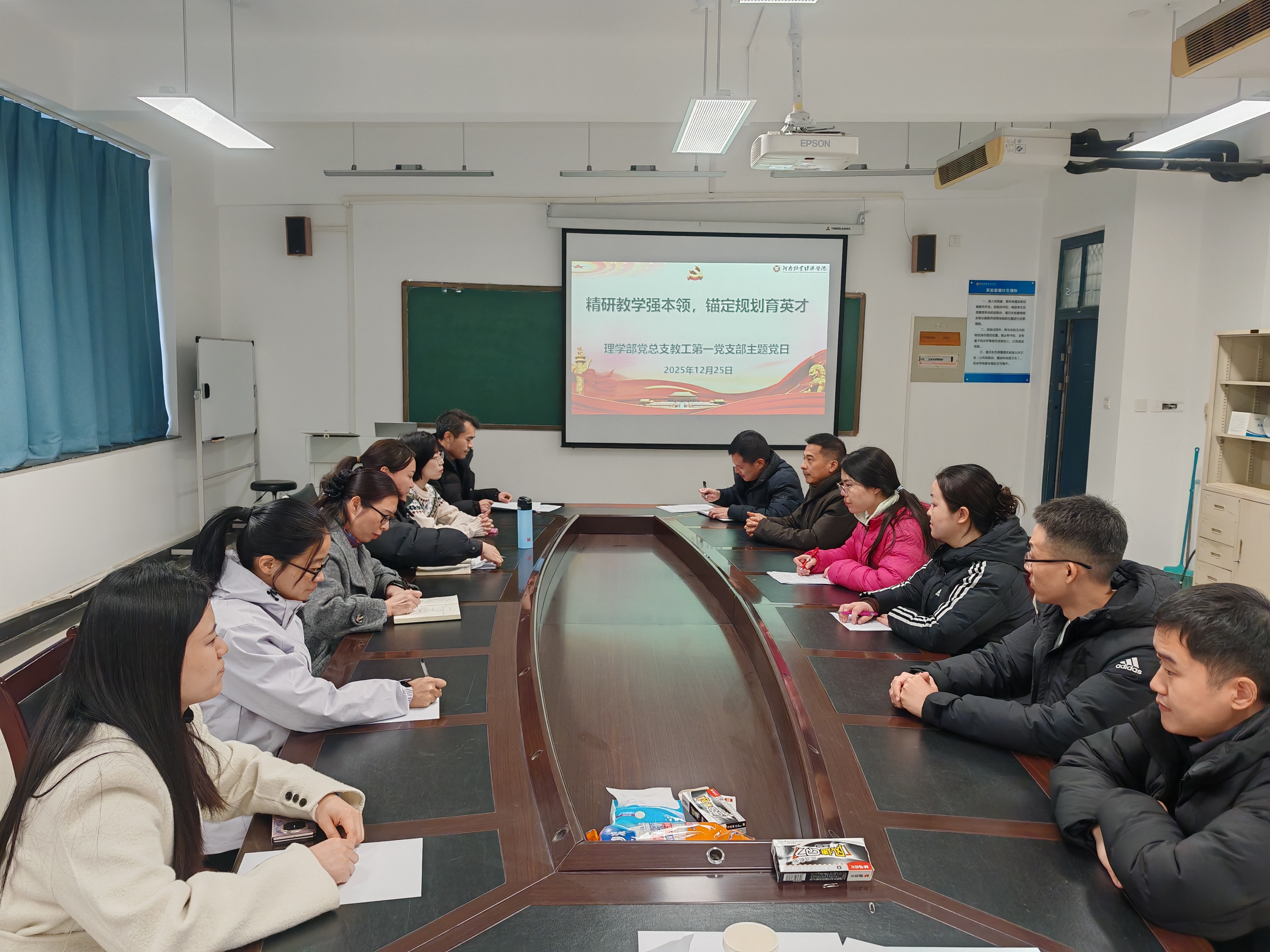 为深入贯彻河南省“十五五”规划中高等教育发展部署,以党建引领教师队伍建设,助力青年教师成长成才,12月25日下午,理学部教工第一党支部在龙子湖校区2号教学楼B502会议室成功举办“精研教学强本领,锚定规划育英才”主题党日活动。支部全体党员齐聚一堂,共学政策、共研教学、共话成长,活动由支部书记刘志景主持。