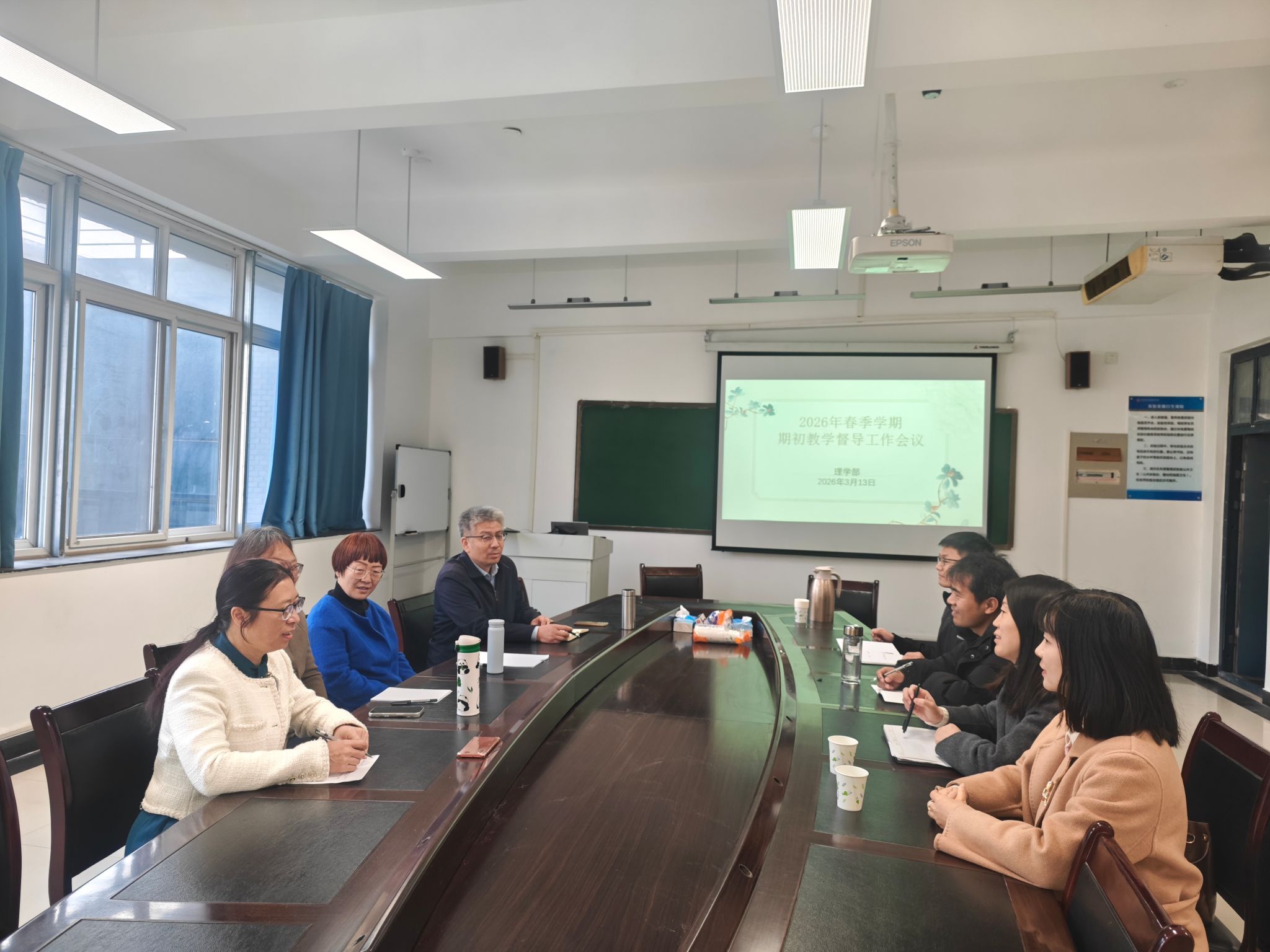 3月13日上午,理学部在龙子湖校区2号教学楼B502会议室召开2026年春季学期期初督导工作会议。会议由副主任林大志主持,主任张荷丽、教学科研办公室主任、各教研室主任及院级教学督导参加会议。