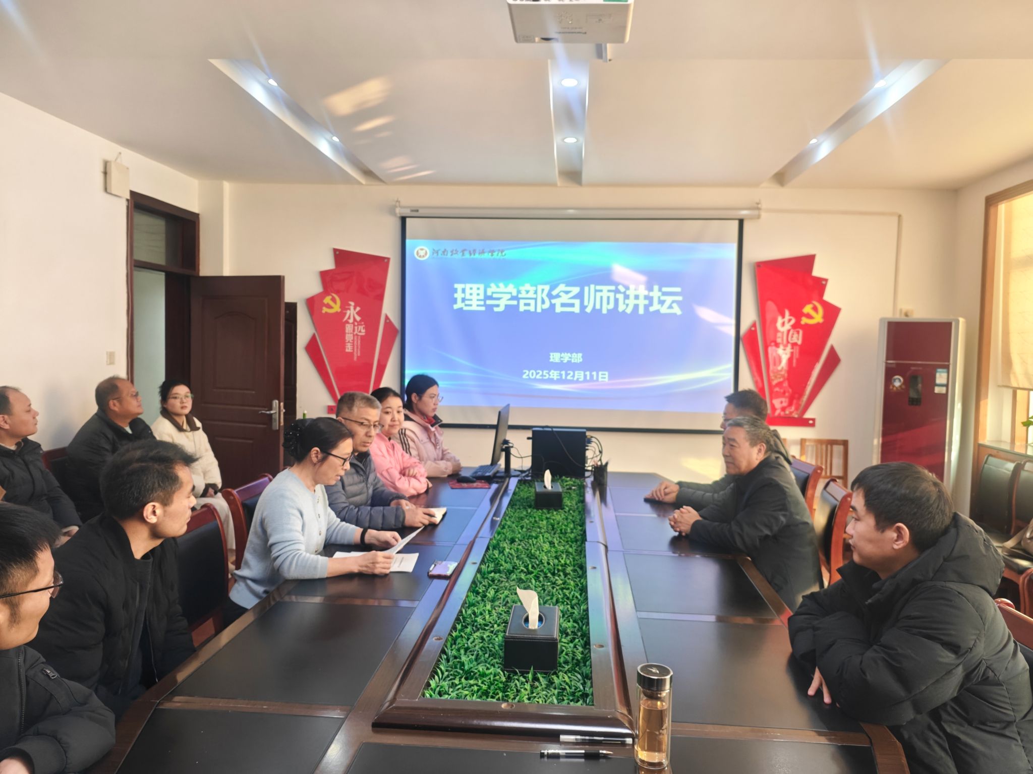 为推动科研高质量发展、提升国家自科基金申报水平,12月11日,理学部在英才校区综合楼303会议室举办名师讲坛,特邀郑州大学二级教授、博士生导师张书胜主讲,理学部主任张荷丽、副主任林大志及全体博士参会。